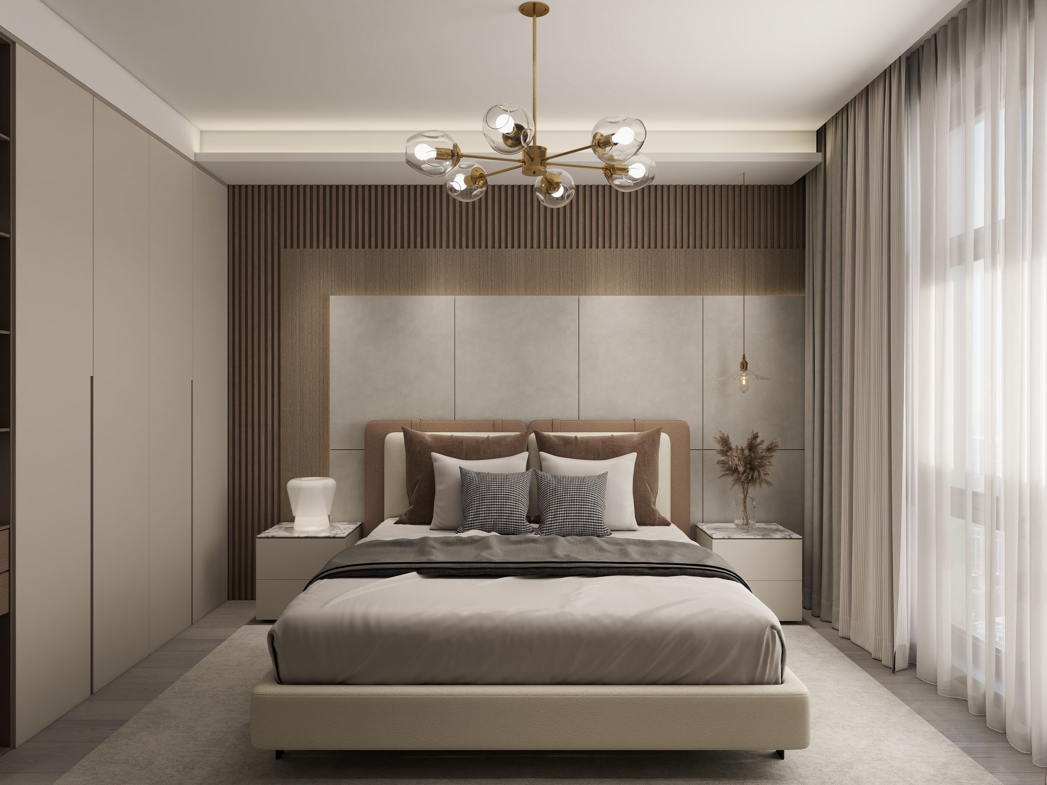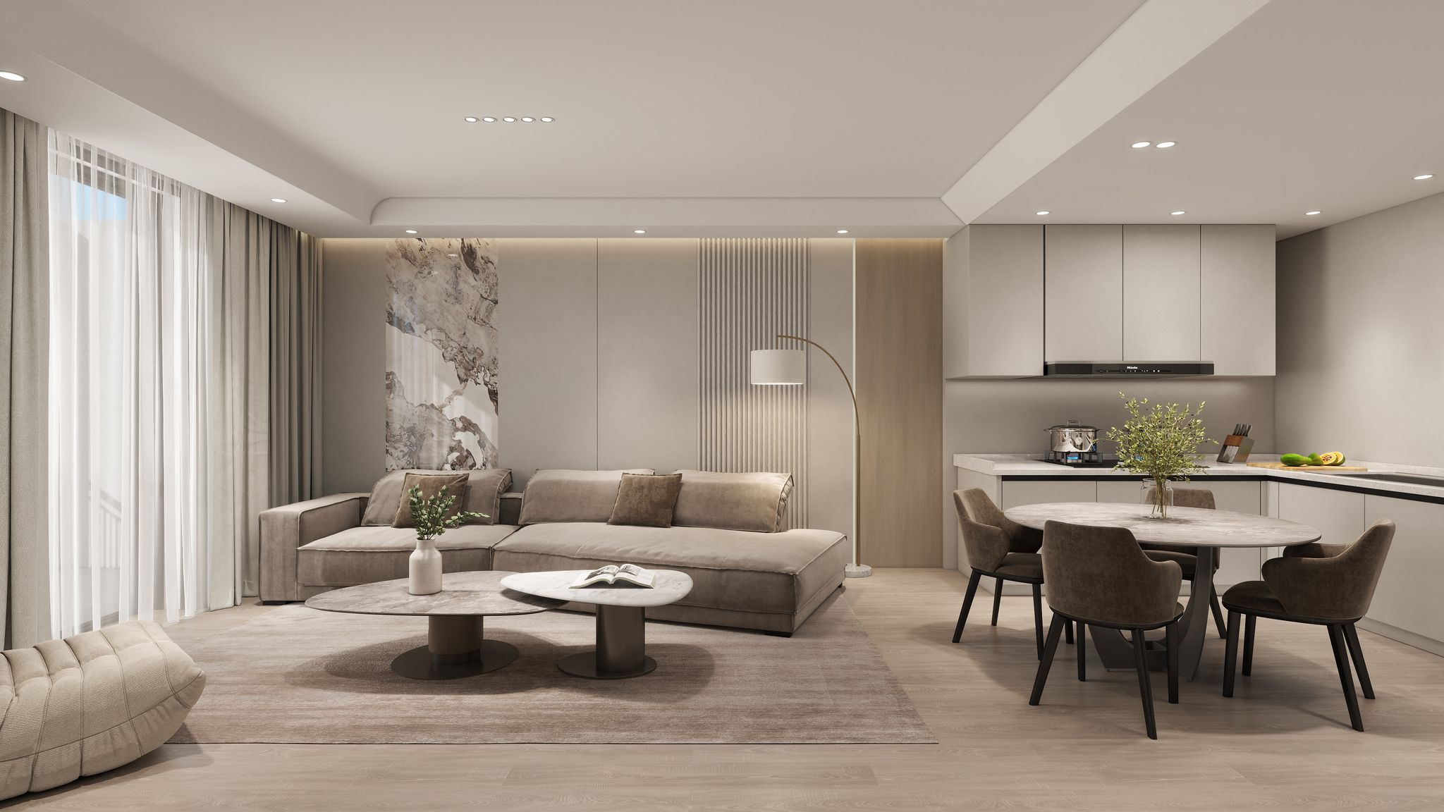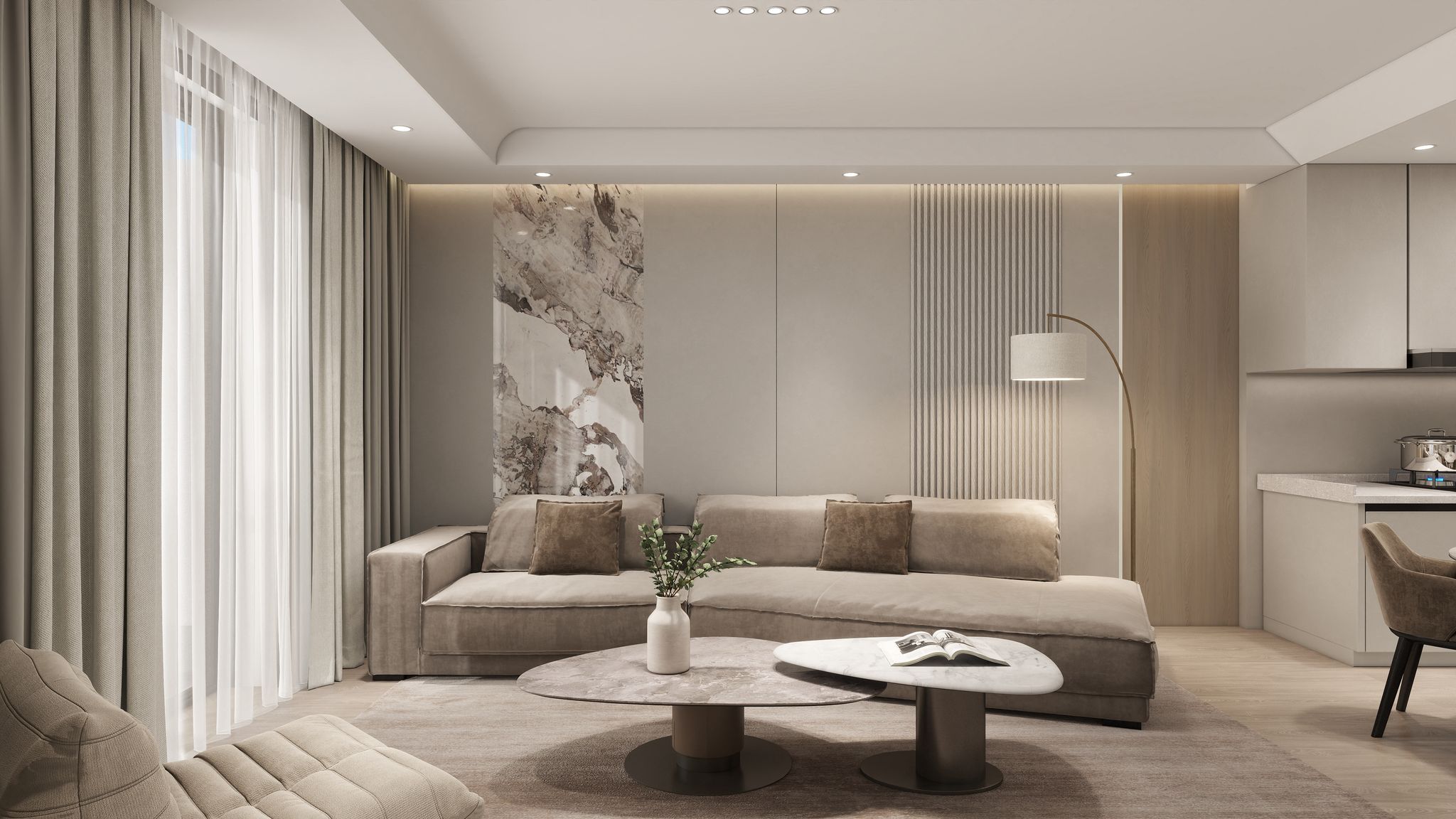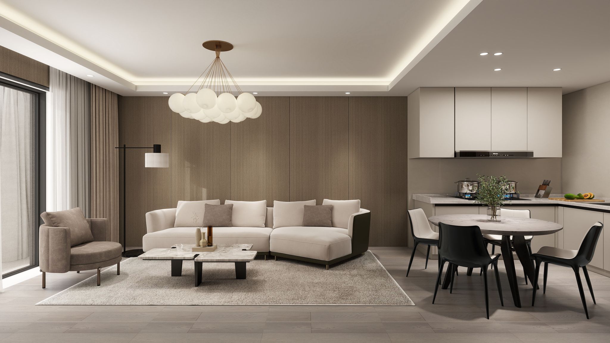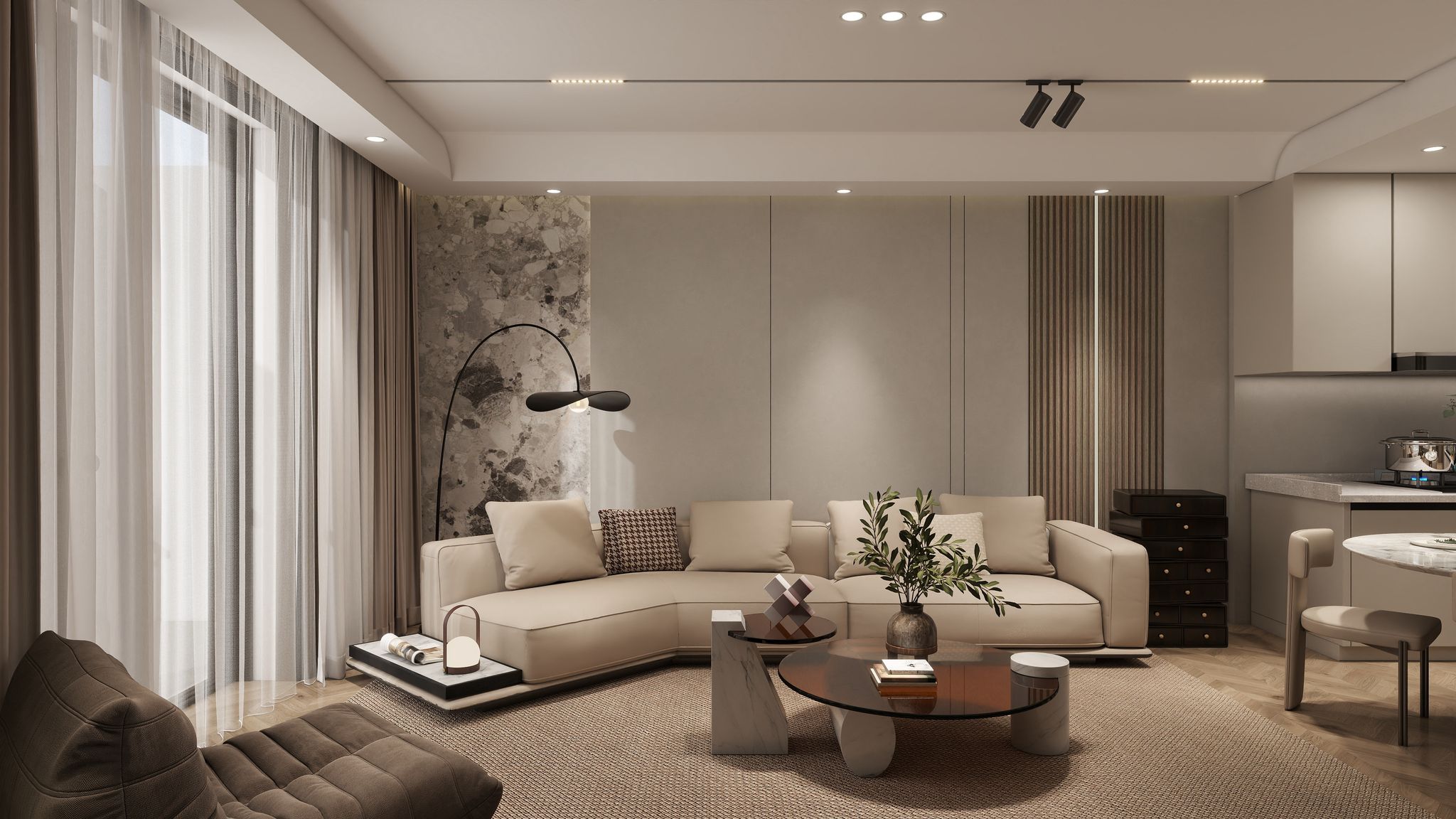 Each piece is meticulously selected to exude sophistication, from statement furniture that speaks of quiet opulence to bespoke wall paneling that brings architecture to life. Every detail works in harmony to create an atmosphere of refined comfort and timeless style.